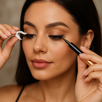 Using your Magnetic Lash Kit is super simple. Start with one swipe of magnetic eyeliner and let it dry for a few seconds.