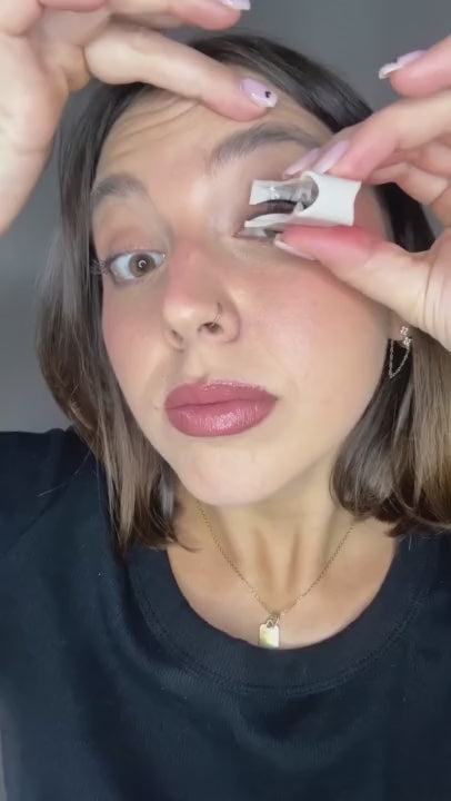 Then bring the lash close to your eyelid — it will click into place instantly thanks to the magnets. Adjust gently, and enjoy effortless volume all day long.